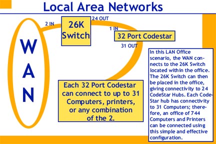 DBAS Fiber Optic Wide Area Networks for Enterprise and Campus Environments The First Affordable, Fiber to the Home LAN WAN Applications Data Services: DBAS' most affordable network solution: With up to 744* users per SmartSwitch, the DBAS solution will save on fiber runs to the Central Office. ![]() *max users per hub is 744, DBAS recommends limiting the amount of users in a FTTH application to 192 to guarantee video bandwidth and IP telephone response Fiber to the Home Our same DBAS Smart Switch, CodeStar and CodeNet architecture can be used Use DBAS' proven technology to deploy large fiber LANs and WANs DBAS enables you to configure a reliable fiber optic data or converged network with proven technology at a lower price than copper or active fiber alternatives Our patented solution provides a low-cost passive fiber optic network using the popular star topology. DBAS offers the only passive optical Ethernet Network Interface Card in the market today. For the past 15 years, our CodeNet Architecture has been providing 10 Mbps passive optical local area networks. ![]() Now, our new Smart Switch enhances the CodeNet architecture to support The DBAS Advantage Low Cost - Our CodeNet network interface cards use LEDs, which are substantially more cost-efficient than laser-based NICs - Our CodeStar Passive Hub uses optical splitter/combiner technology. With no optical to electrical conversions, the hub requires no power - for lower total cost of ownership Highly Functional - DBAS LANs comply with the standard 802.3 protocols and contain the full functionality needed to operate a true Ethernet network - Our patented collision technology enables true peer to peer relationships - DBAS passive fiber technology has a range of 1.6 km - far greater than copper, and suitable for warehouse and campus situations - Our CodeNet NICs operate with Microsoft Windows, Novell, TCP/IP, and other popular system software and OS interfaces - The CodeStar Hub technology supports WDM and VPNs Versatile - Because the hub requires no electrical connections, it is compact, lightweight and can be installed virtually anywhere - The small office configuration is scalable, with up to 32 users per hub, and easily expandable to a multi-hub configuration Reliable - Because the CodeStar Hub is completely passive, it virtually eliminates the single point of failure inherent in active star networks - The CodeStar Hub can be installed in hostile environments such as telephone poles and building ducts - Without lightening protection - Temperatures of -40O to +75O C - No heat, no power, no fire hazard View Our Company Info, or send in a Request For Quote. |